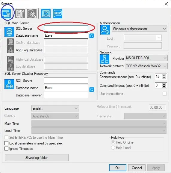 6. Run as admin “Etere configuration” and connect to your SQL server