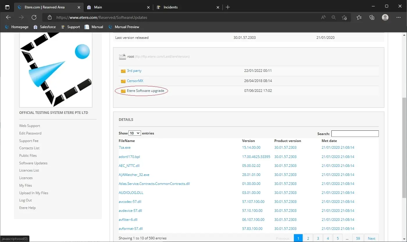 1. Go to your reserved area and under “software update” install “Etereinstall.exe” (Etere Install)