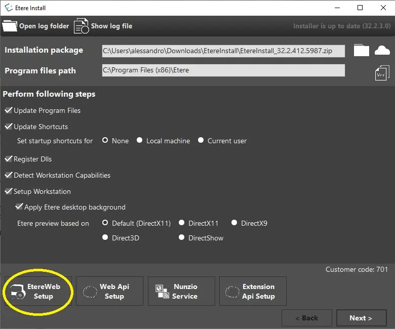 2. Launch the Etere Installer; click the button above to start the application initialization process and