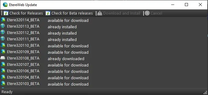 By simply clicking on the "Check for updates" button, it's possible to see all the latest Etere Web releases and check if they have been installed, downloaded, or available to be downloaded.