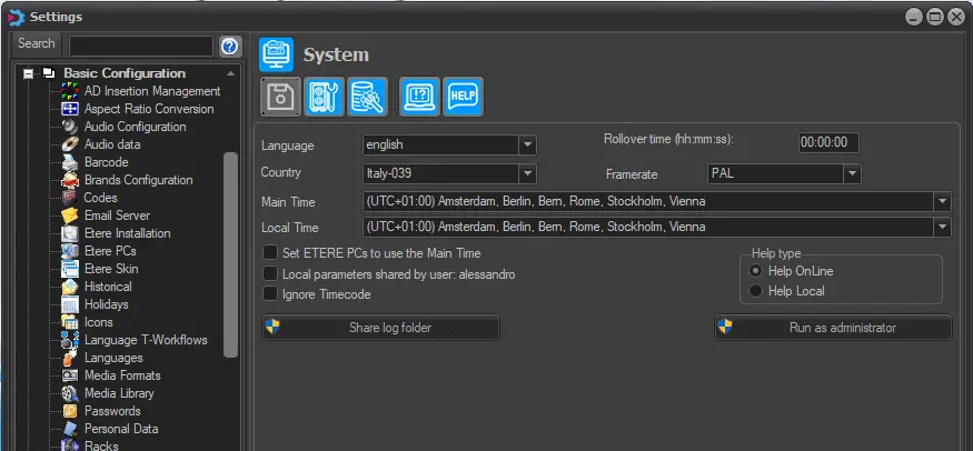 However, it is possible to run Etere Configuration "as administrator" to view and modify all the system settings.