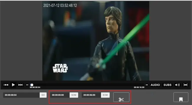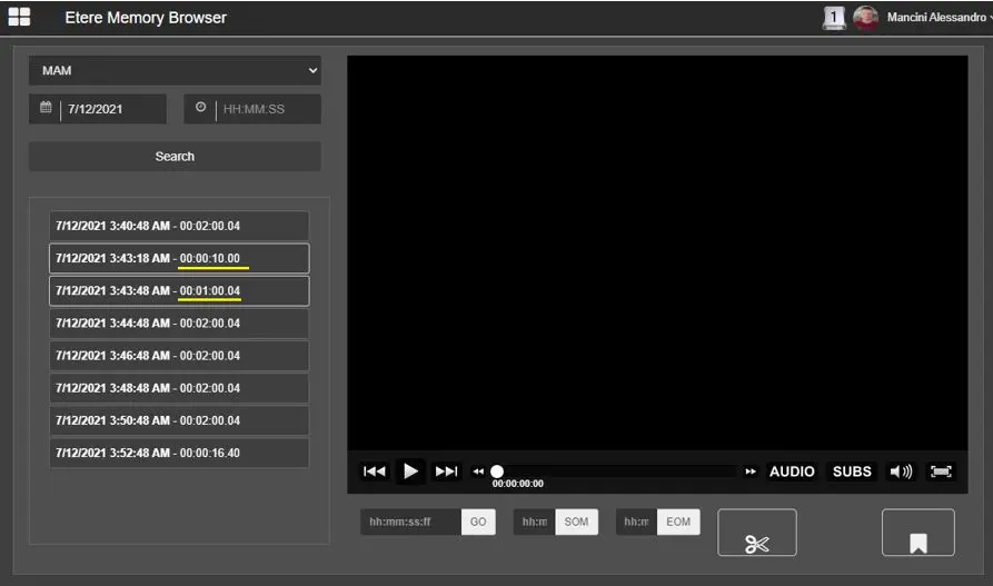 Memory browser allows to cut the selected video by simply filling the SOM and EOM fields and clicking on the <Cut> button.