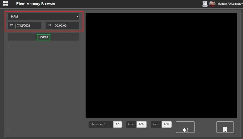In Etere Memory Browser, you can search for memory asset by simply selecting the station and the date and time when the recording was made, then click Search button, a date as indicated in the screenshot below.