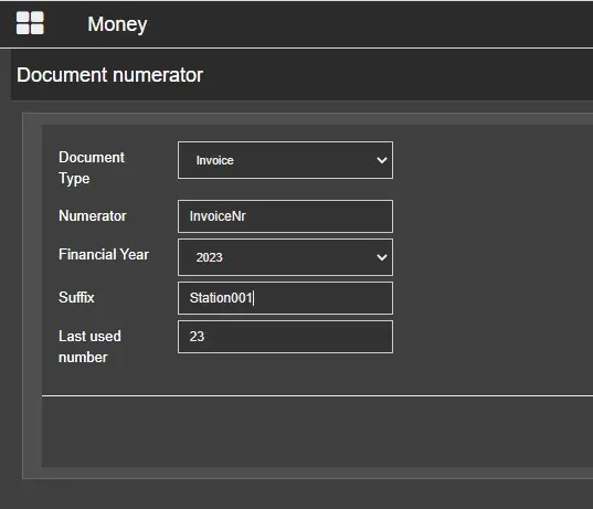 Last used number: The invoice number of the last created invoice. It can be used to start creating invoices from a specific number. E.g.: Setting this field to 10, the first created document of the selected type will have the number 11.