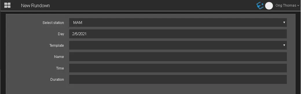 - Select Station: Select one of the available stations to associate with the rundown, e.g. MAM, ETX, etc.;