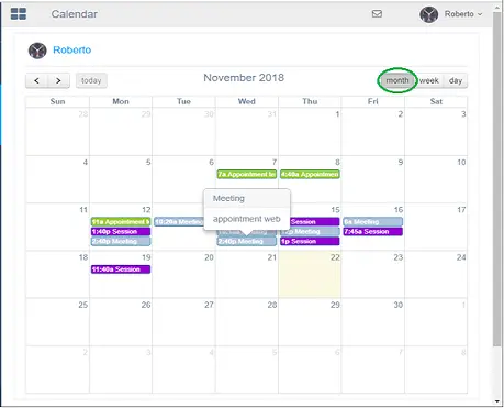 The “Month” calendar display the appointments scheduled within the specific month of the year, where the current day is highlighted.