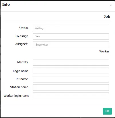 The Job Info action displays the general information of the respective task. The parameters in the job information are self-explanatory.