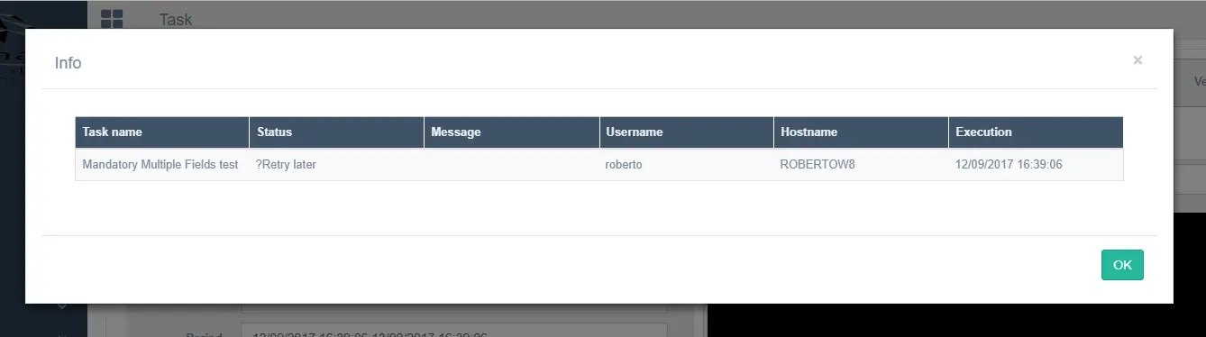 In the Task view, the user would also notice that the ID of the specific task has been changed to "0" to prevent access to the task.