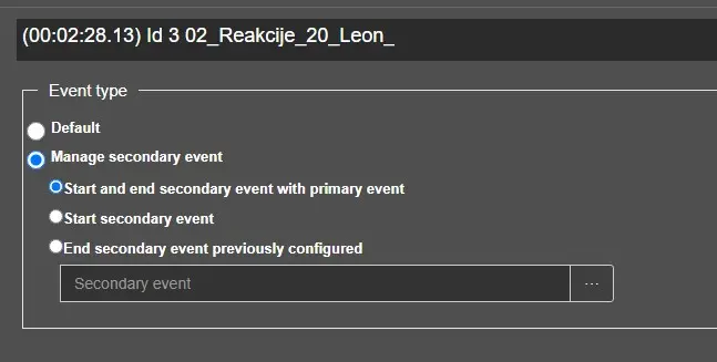 Choosing the option "Manage secondary event", three other options will appear, as well as another field where the secondary event has to be specified.