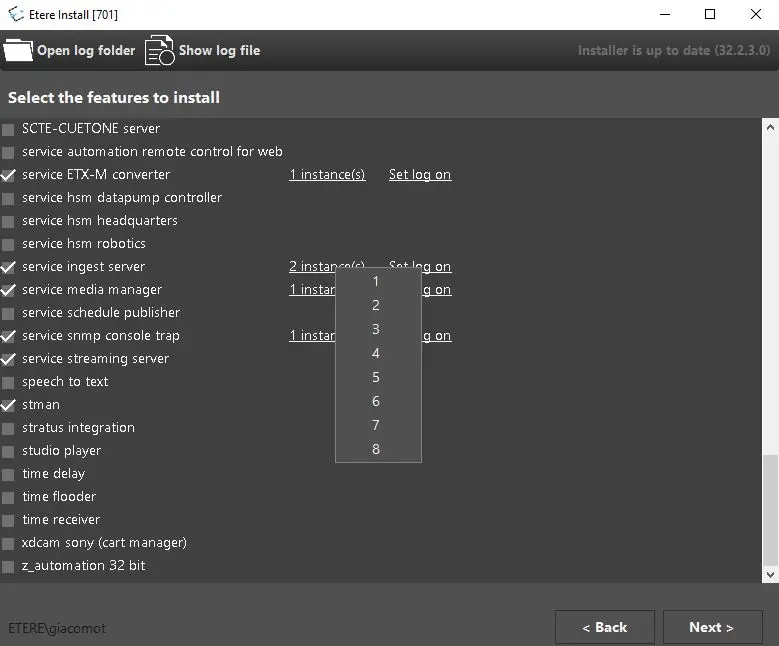 In order to use Etere Ingest as a Service we need to install the feature called Service Ingest Server, which allows us to start the Service first installation. We can rely on the standard Etere Update module in order to do so.