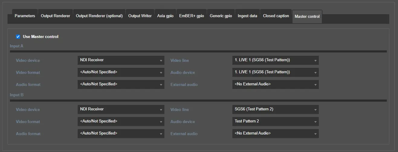 Use Master control: Activate this option to enable the parameters below and configure the master control feature.