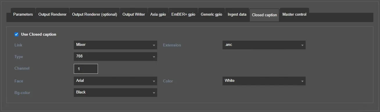 Link: Choose on which render the closed captions should be sent, Playlist or Mixer.