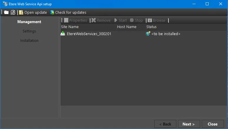 Note: Before Web API setup, Etere application modules must be installed and configured in the workstation.