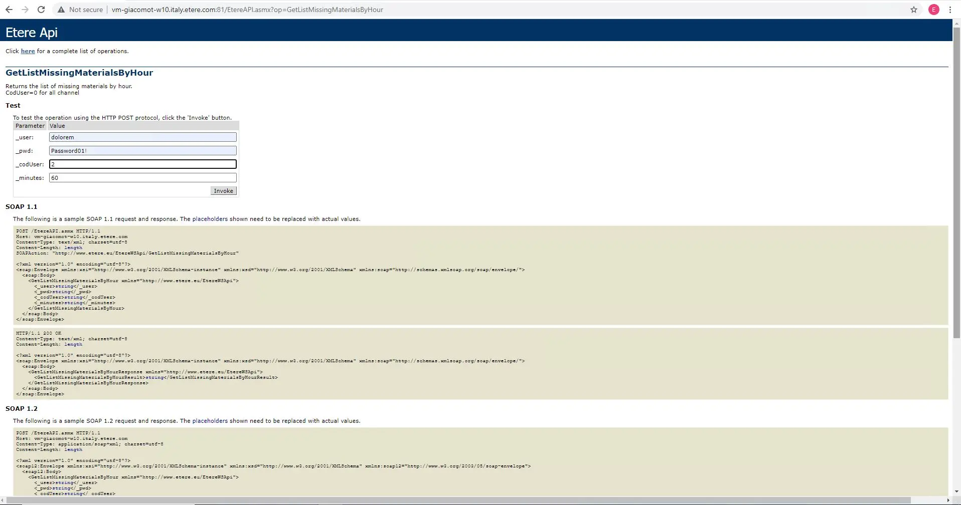 DESCRIPTION: Generate an XML file returning the list of missing materials filtered by the hour.