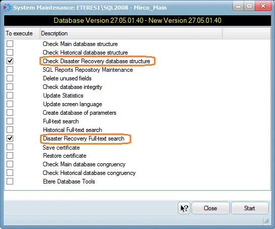 The above System Maintenance task is necessary only if the Disaster Recovery database is not accessible before. Otherwise, you can run the "Check Disaster Recovery database structure" and "Disaster Recovery Full-text search" System Maintenance tasks along with the "Check Main database structure" task. The above System Maintenance task is necessary only if the Disaster Recovery database is not accessible before. Otherwise, you can run the "Check Disaster Recovery database structure" and "Disaster Recovery Full-text search" System Maintenance tasks along with the "Check Main database structure" task.