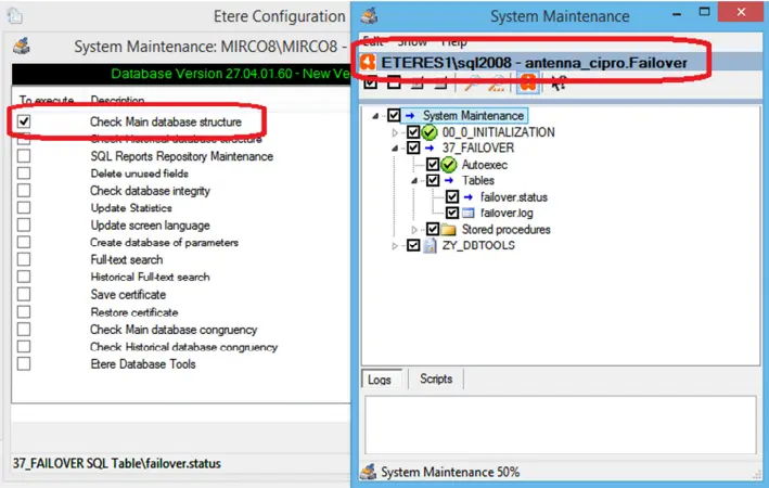 After the Disaster Recovery database has resumed the role of the Main database, you would need to run the System Maintenance task immediately to initial the database structure. Select "Check Main database structure" from the maintenance task list to perform maintenance on the Disaster Recovery database to resume all operations on this database.