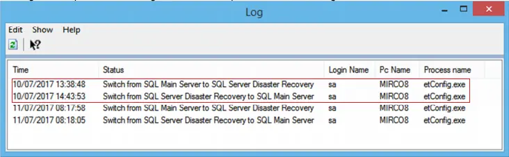 To resume the operations on the Disaster Recovery database, click on the "set as working database" button on the SQL Server Disaster Recovery section to promote the disaster recovery database as a central database and redirect all the connections to this database.