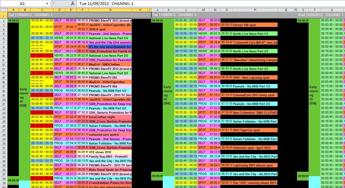 Weekday - Date - Channel (e.g. Tue 11/08/2012)