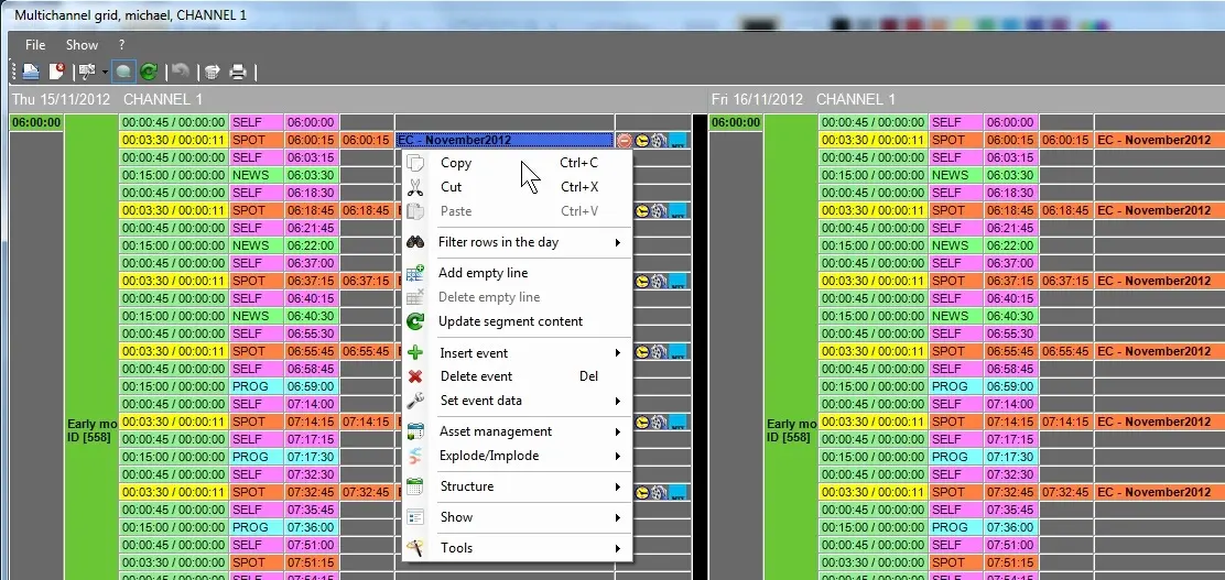 The Multichannel Grid allows managing events displayed within playlists through the contextual functions explained in this chapter: