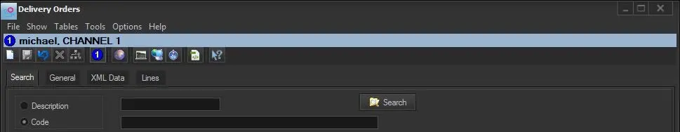 Tabs - Located below the menu bar, the tabs allows managing of Delivery Orders, from their initial search, to their general data entry, XML data loading and Lines definition.