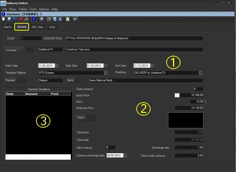 The "General" tab is used to compile information related to the delivery of contents, information are mainly divided into 3 areas: