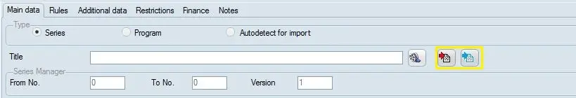 [Search] icons - The asset icons on the Title field allows selecting the season or program, or search the imported text file to which the order line is related.