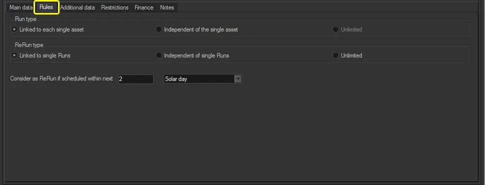 Please note that if setting unlimited ReRuns, the "ReRun" value set in the main data tab will be also modified (i.e. set to zero).