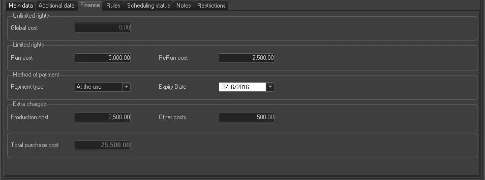 Description : In case the single/season program counts with "unlimited rights", specify here the total price paid for it.