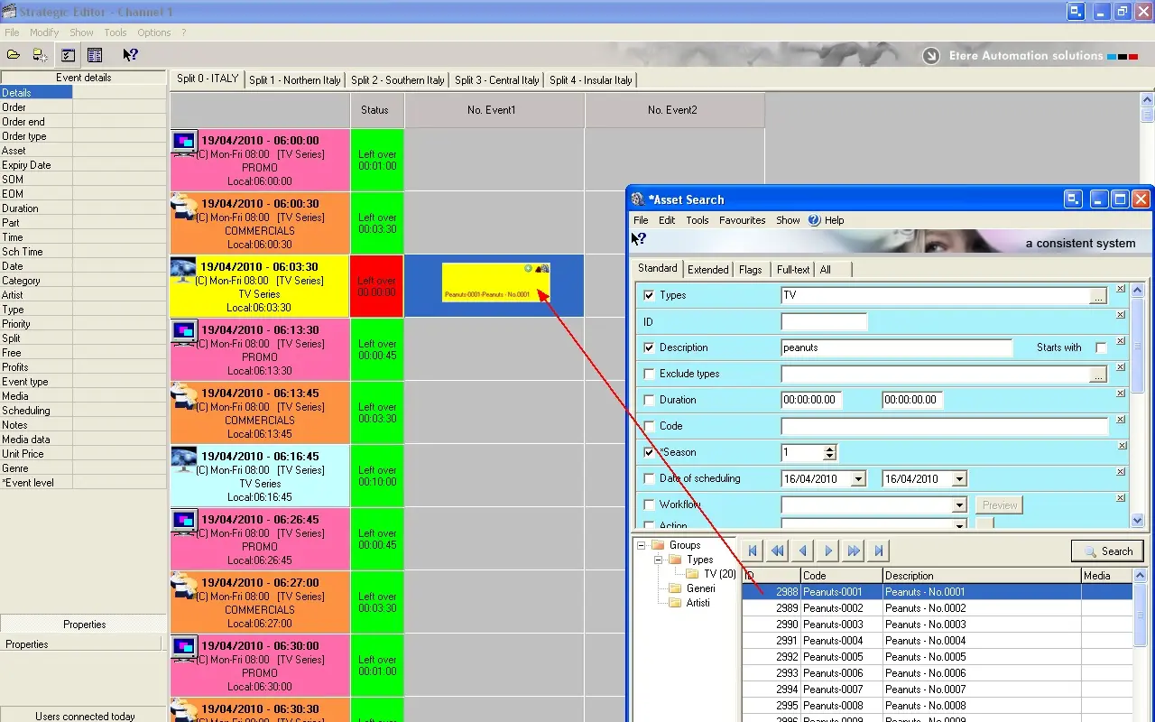 Etere Air Sales allows manually schedule existing season using the Strategic Editor application: