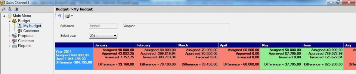 The Budget section allows the sales staff to keep an eye on their own budgets as well as customers budget, there are two available types of budgets: