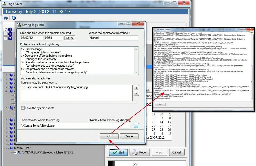 Finally, press the [OK] button to save all logs according to set parameters.