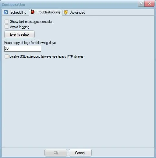 Configure Events - Configure events (i.e. errors, transfers, applications) to either log or avoid logging (depending on the "avoid logging" setting).