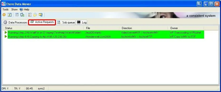 For better monitoring of processes, user can click on any request item to display the progress status of the currently running process, including the date and time the process is started, sequence of events, e.g. starts of file transmission, percentage of transmission in progress, transmitted file size, and process completion time. The archive and restore process by DataMover can also be monitored.