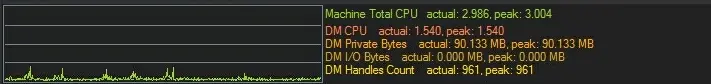 DM CPU - Specific CPU currently used by Etere DataMover, and higher peak reached.