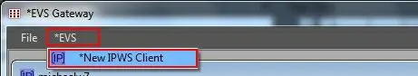 Once the main settings have been configured, it can start a new connection by selecting the "New IPWS Client" from the "EVS" menu: