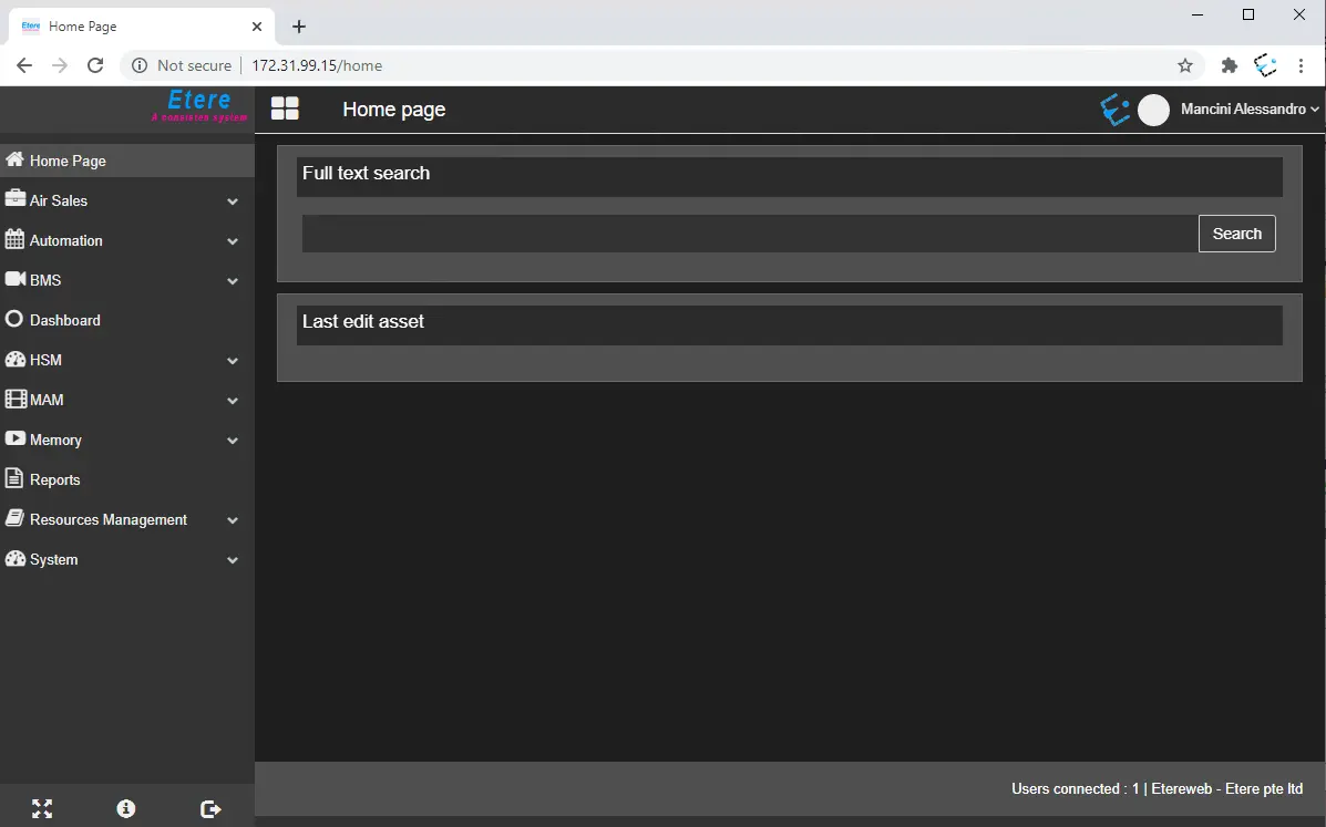 ✓ Full-text search: this feature perform a keyword search for assets used by Etere. See chapter 10.2.4.0 Search assets for more information.