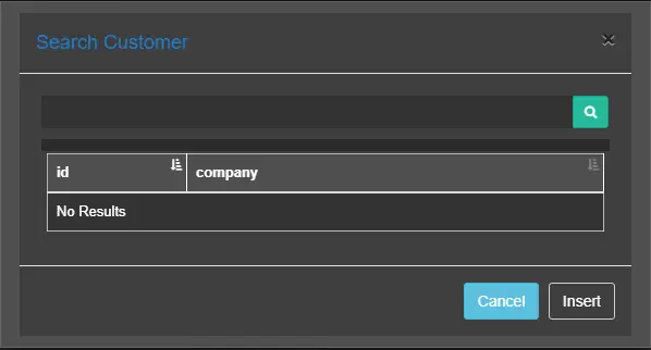 You can enter a customer name in the text box to begin the search; once the customer is detected, the customer ID and Company name will be auto-retrieved from a database table. Click <Insert> to insert the customer data for filtering.