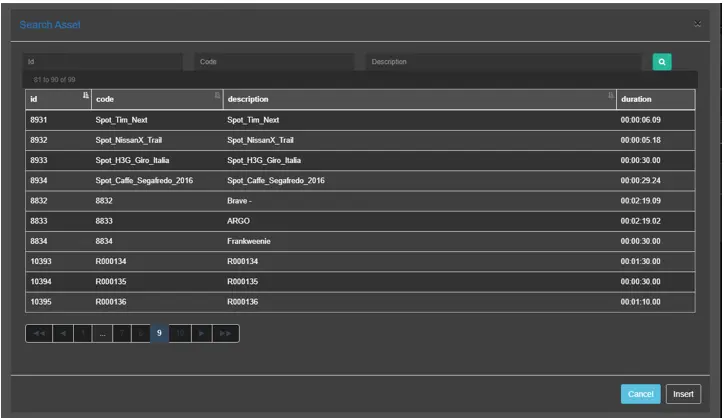 Select an asset from the Search Results and click the <Insert> button to link the assets to the Order line.