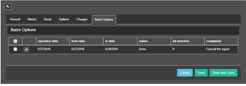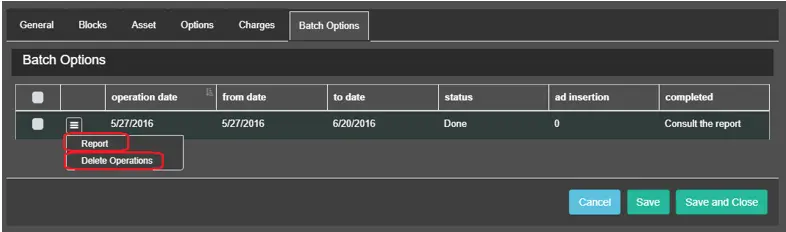 The Batch Options allows you to generate a batch report containing detailed information on the selected batch operations process.