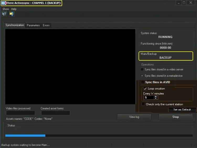 The main/backup mode allows two instances of Etere ActiveSync to run on different computers to increase the redundancy of the synchronization process, making the backup system capable of replacing the main one if it stops running.