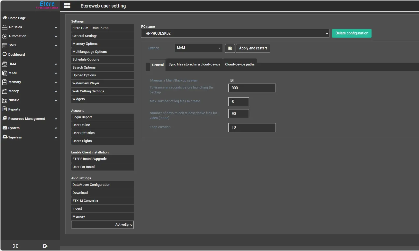 Set the parameters and criteria for synchronising assets and files under Etere Web -> User Preferences -> ActiveSync section. It's worth mentioning that the parameters specified here are specific to the selected station only.