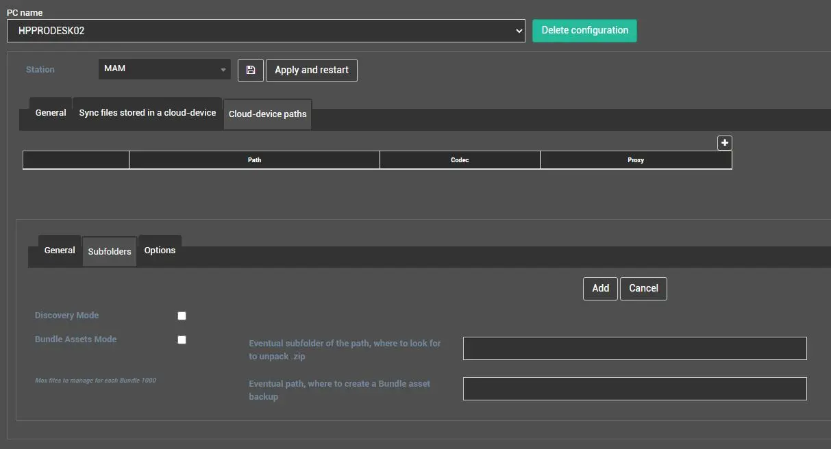 NB: Before selecting the cloud device, you must be granted "Allowed" access to the devices in the node CLOUD-DEVICES for WEB users, and the related media folder must be enabled.