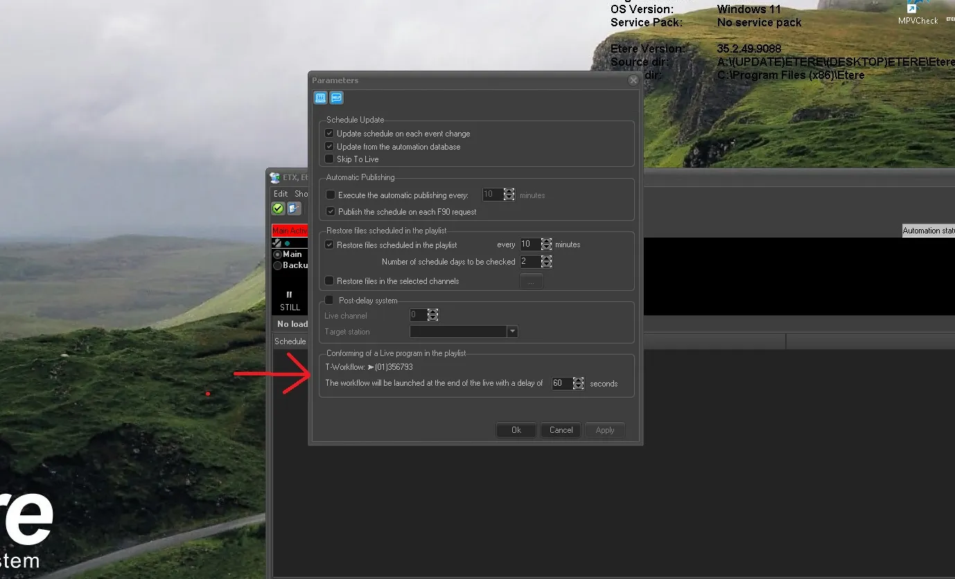Note: The workflow can be assigned for this function in the section Default T-Workflow "Conforming of Live program in the playlist" on EtereConfiguration\Configuration Editor\T-Workflow