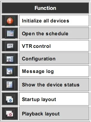On the top border, you find specified the channel Automation is broadcasting and the date of the scheduling on air. On the left, you see the function buttons; below are the details for each function: