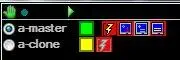 At the left are listed the Master and Clone (if activated) automations; the currently active one is ticked, and the names will be complemented with a small box beside them; this box will indicate the state of the automations:
