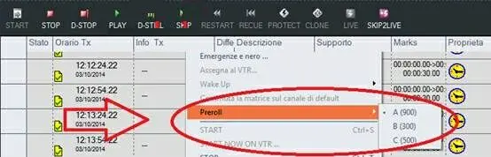 3. A different preroll time can be manually activated at any time by making right-click on the playlist and selecting the "Preroll > A / B / C" menu: