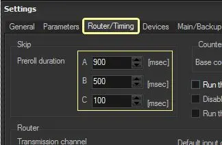 1. Under the "Automation > Settings > Router/Timing" tab, set the primary and secondary preroll times to be used: