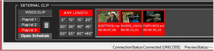 As shown in the display above, the spots marked in red are without video files; you can select the cluster to load those spots by right-clicking on the mouse and selecting <Load this cluster in the Censor>. Upon completion, the areas of the cluster in red would be loaded into Playlist 3 (as shown below) and ready for schedule and timeline.