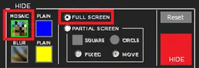 Select MOSAIC effect and PARTIAL SCREEN, shape in SQUARE and FIXED position.