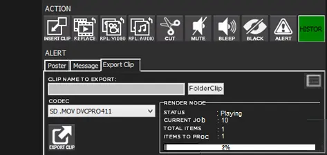 Moreover, the “Folder Clip” beside the clip name parameter would enable to view the clip exported. A user menu positioning in the render node frame allows the user to manage the export process.